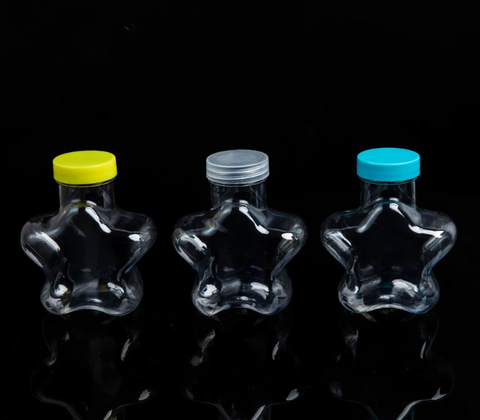 Venta al por mayor 38 calibre botella en forma de cinco estrellas para té botella de jugo caramelo botella dividida tarro de plástico multiusos